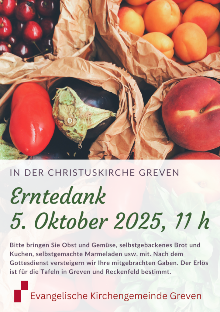 Willkommen auf den Seiten der Evangelischen Kirchengemeinde Greven! Wir freuen uns, dass Sie sich für uns interessieren. Hier finden Sie viele Informationen und können sich von Ihrer Kirchengemeinde ein erstes Bild machen.