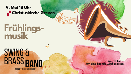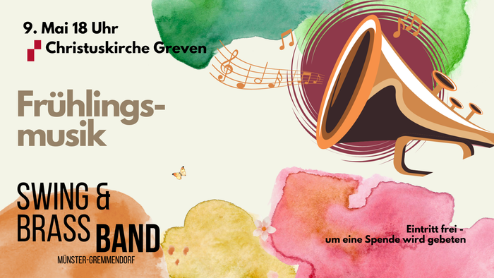 Am 9. Mai findet in der Christuskirche ein Frühlingskonzert mit der Brass-Band Münster-Gremmendorf in der Christuskirche statt. Der Eintritt ist frei.